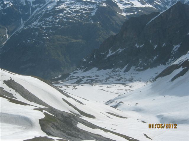 Au col de l'Aup Martin le manteau neigeux diminue de jour en jour,le sentier apparaît...un conseil,choisir les passages en neige plutôt que les schistes qui restent très glissants avec de la glace dessous.